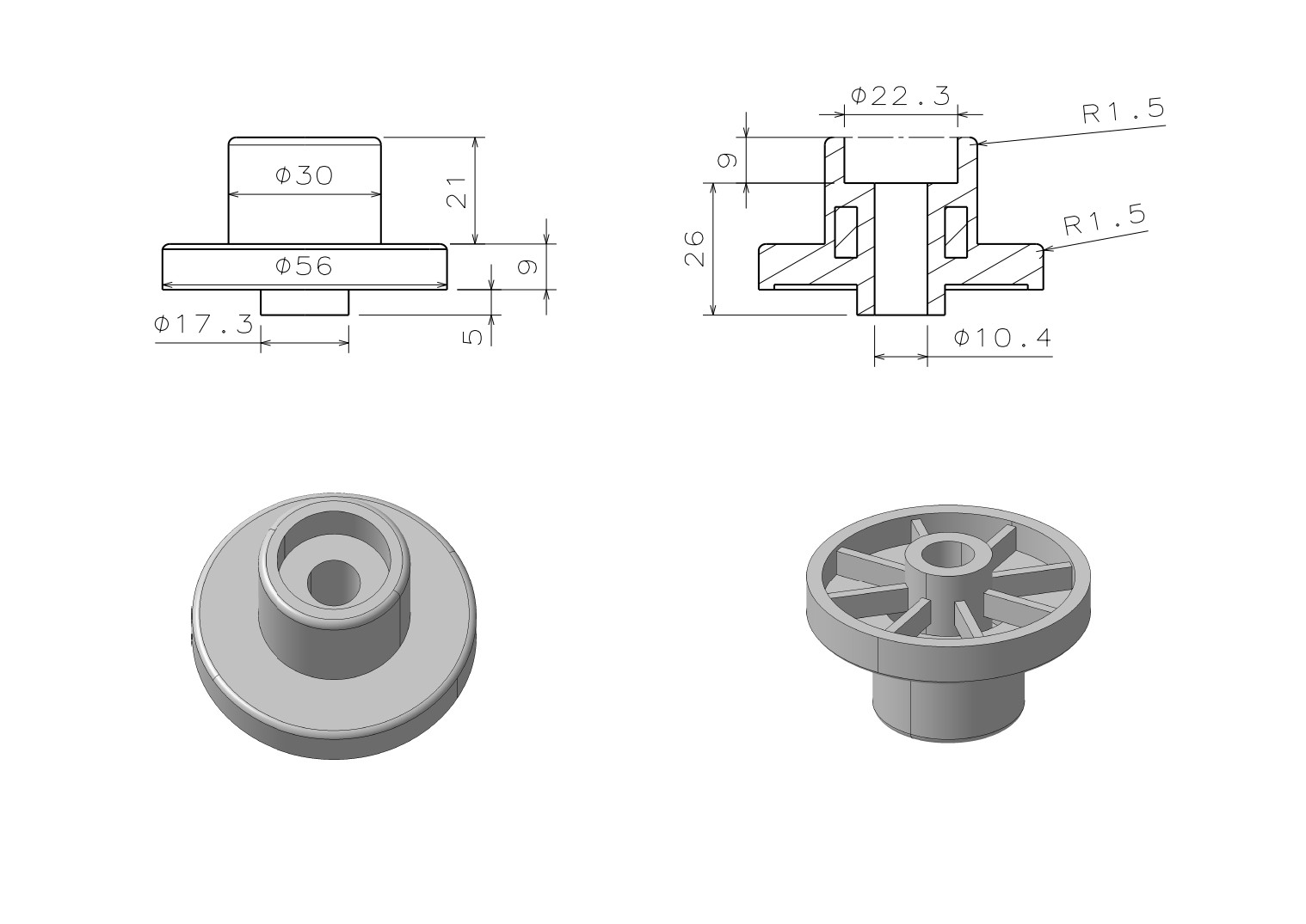 Round 55 mm Sofa Bed Plastic Feet